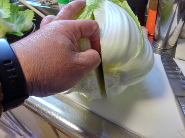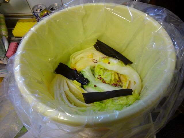2玉6キロの白菜を、まずは、白菜の重さの3~4%200グラム強の塩だけで漬けました♪