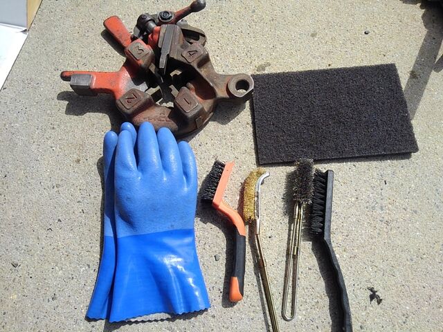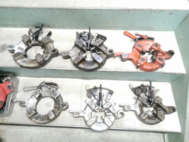 真ん中に有る4本の刃(1、2、3、4と書いて有る内側)でパイプの外側にねじ山を付ける機械です(((^^;)